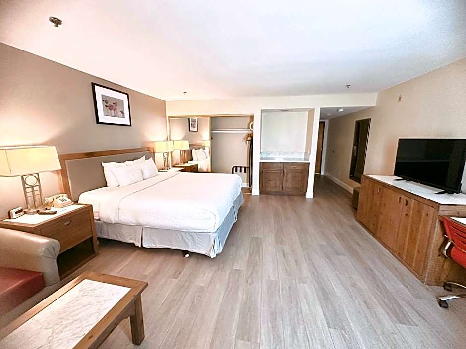 This king suite offers free Wi-Fi, refrigerator, microwave, desk and coffee maker.